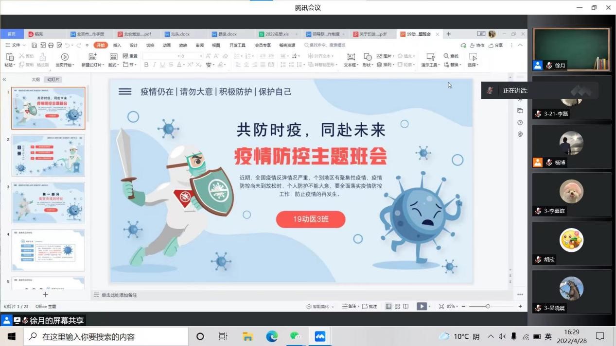 的疫情防控工作,始终以高度的责任感,多次开展主题班会强化同学们的疫情防控相关知识,筑牢疫情防控防护网,守护自身责任田。