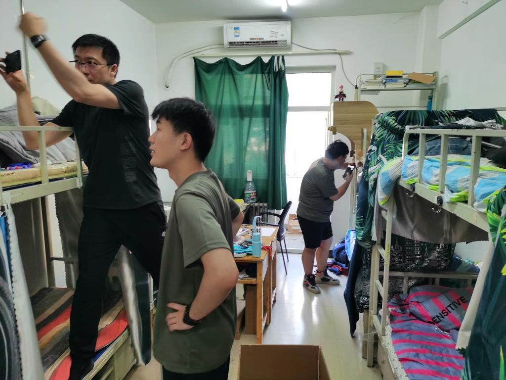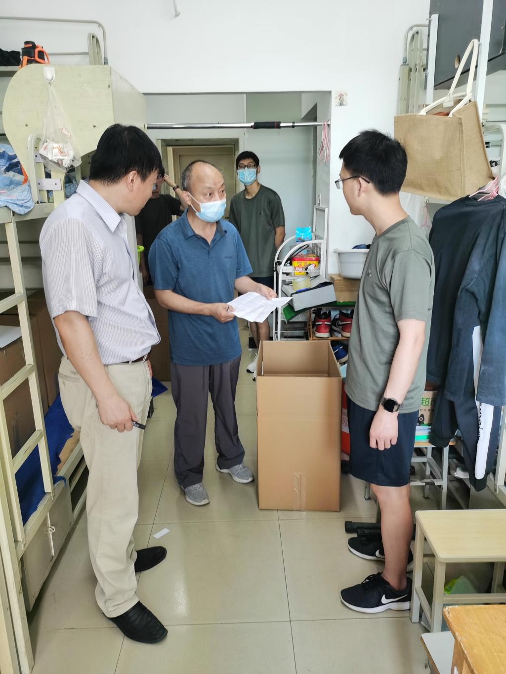 老师组成16个工作小组,同时在学生宿舍中开展行李打包工作。