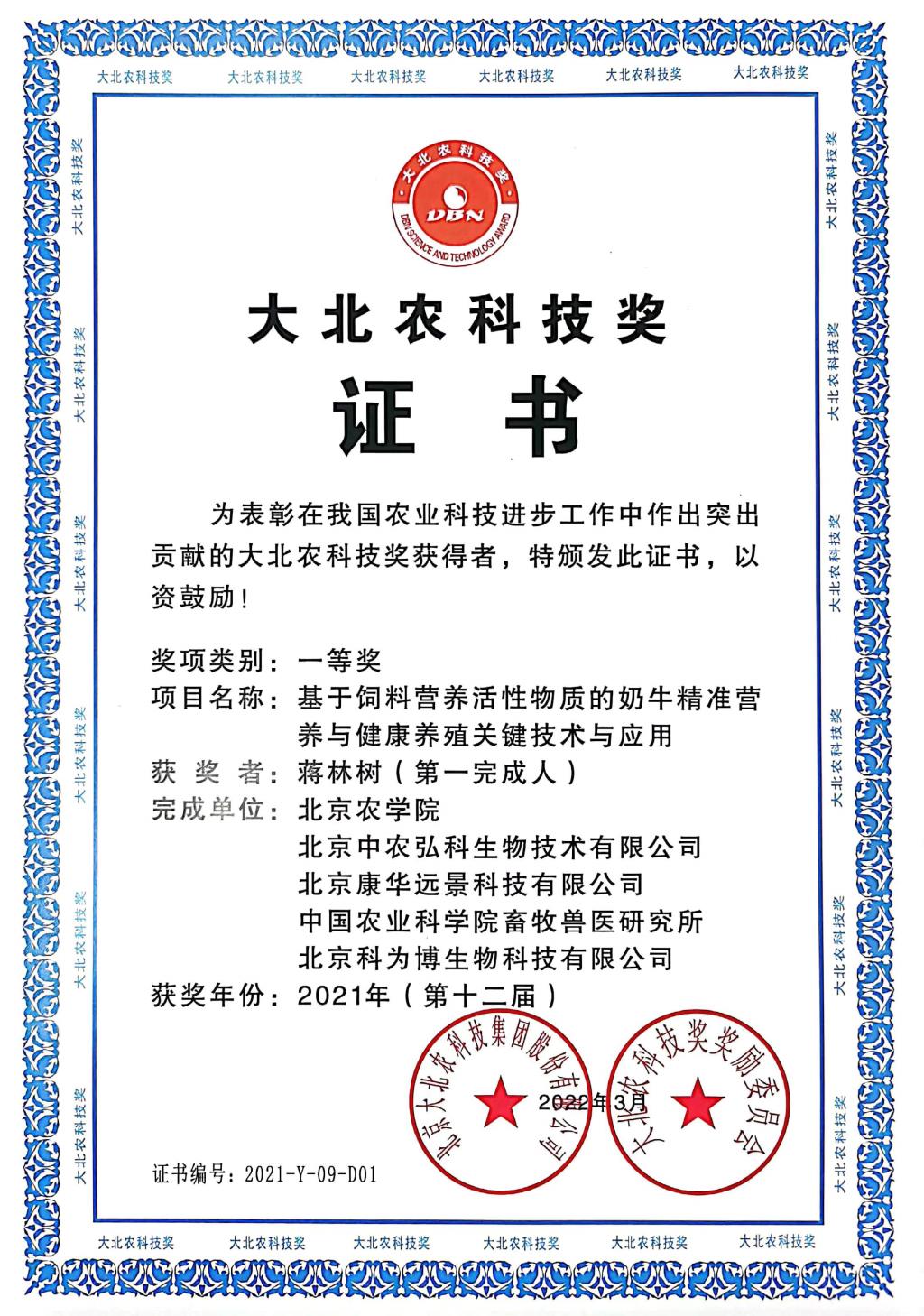 2022年6月28日,“第十二届大北农科技奖颁奖暨中关村全球农业科技创新论坛”在北京隆重召开。大会全球同步直播,近100万人在线观看。红桃视频 副院长段留生应邀参加颁奖大会并主持中关村全球农业科技创新论坛。红桃视频 作为第一完成单位、由红桃视频 蒋林树教授主持完成的“基于饲料营养活性物质的奶牛精准营养与健康养殖关键技术与应用”成果荣获一等奖,参与完成该成果的红桃视频 教师还有刘明、董虹、方洛云、王慧和童津津。