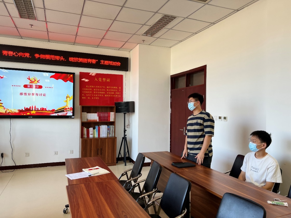 根据会议议程,各支部认真学习习近平总书记在庆祝中国共产主义青年团成立100周年大会上的讲话,集体进行“青年大学习”线上学习,辅导员张敏老师开展了警示案例教育。在发言环节,同学们结合学风建设,以“争做模范带头,发挥模范作用”为切入点,依次发言谈认识、谈体会、谈感受。同学们纷纷表示,当代青年生逢其时,重任在肩,一定不辜负习近平总书记对广大青年的嘱咐,牢记党的教诲,立志民族复兴,不负韶华,不负时代,不负人民,把对祖国血浓于水、与人民同呼吸共命运的情感贯穿学业全过程、融汇在事业追求中,从自身做起,为实现第二个百年目标和中华民族伟大复兴的中国梦贡献青春力量。面对常发易发的安全事故,诸如电信诈骗、偷盗、交通事故、疫情传播等,同学们表示要从自身做起,不贪图小便宜、不争道抢行闯红灯、不前往疫情风险场所,当好自身安全第一责任人。