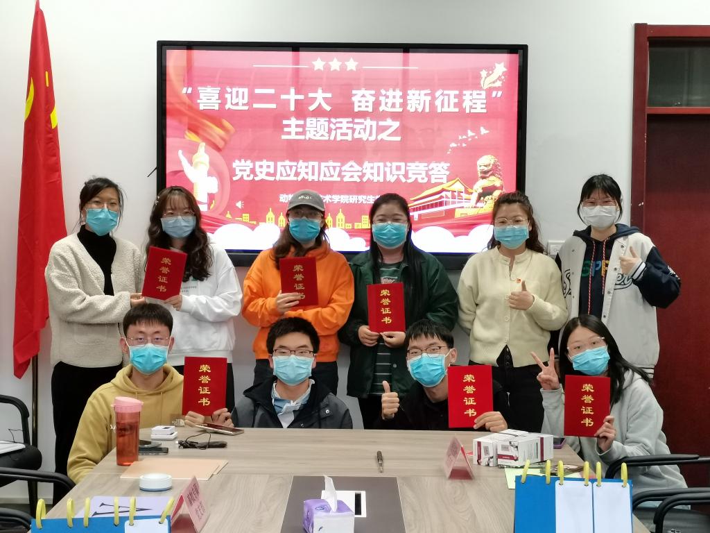 研究生党支部以赛促学、以赛促练、以赛促干的重要方式,在广大青年学子中掀起了党史学习热潮,激发出奋进之力,动科学子将以更加饱满的热情和昂扬的精神状态迎接党的二十大胜利召开!