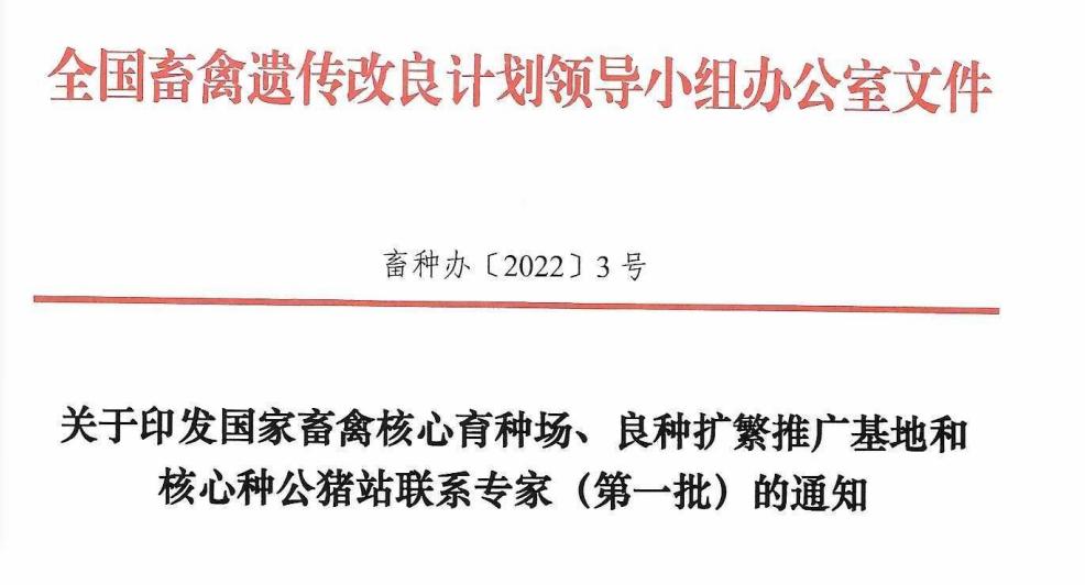 为促进新一轮全国畜禽遗传改良计划落实落细,全国畜禽遗传改良计划领导小组办公室经于2022年11月15日正式发文,为每个国家畜禽核心育种场、畜禽良种扩繁推广基地和核心种公猪站安排一名遗传改良计划专家委员会专家作为联系专家,要求联系专家加强技术指导,与联系场互相配合,通力合作,共同落实好改良计划工作任务。