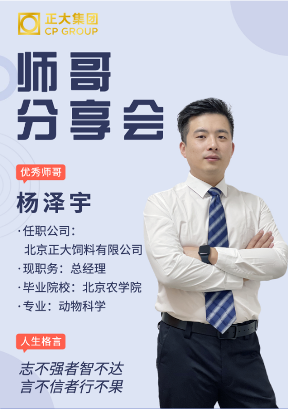 现任北京正大饲料有限公司总经理和猪事业线主管的两位2010届动物科学专业毕业生杨泽宇、马彪分享了自己在正大集团的职业生涯,鼓励大家加入正大集团,实现自己的梦想。