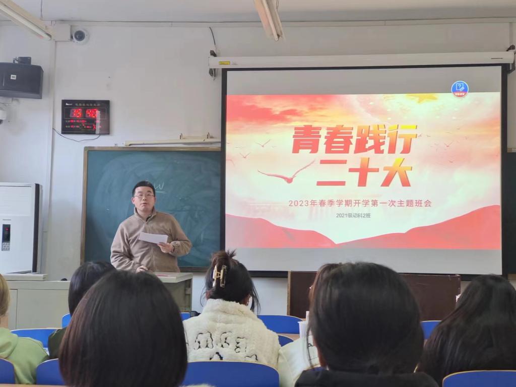 本次主题班会围绕学思践悟二十大、心理健康教育、安全教育和“乙类乙管”防控措施等多个方面的内容,通过班主任专题讲解和学生表态发言等多种形式开展教育引导。班会现场气氛热烈,同学们主动分享收获感悟,树立新学期目标,纷纷表示要以党的二十大精神为指引,争做有理想、敢担当、能吃苦、肯奋斗的新时代好青年。