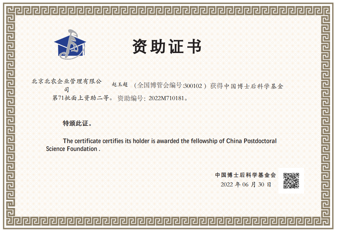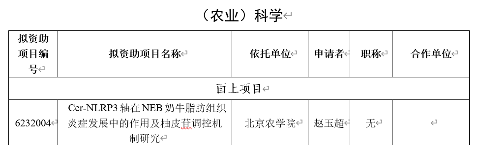 此外,赵玉超博士主持的《柑橘黄酮通过ADPN-鞘脂群代谢网络调控奶牛体脂动员的机制研究》于2022年6月获得中国博士后科学基金第71批面上资助二等。