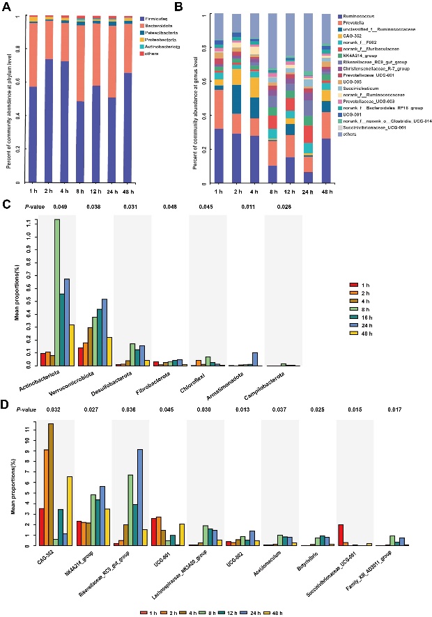 图1. 48小时内柑橘提取物附着的的瘤胃细菌动态变化