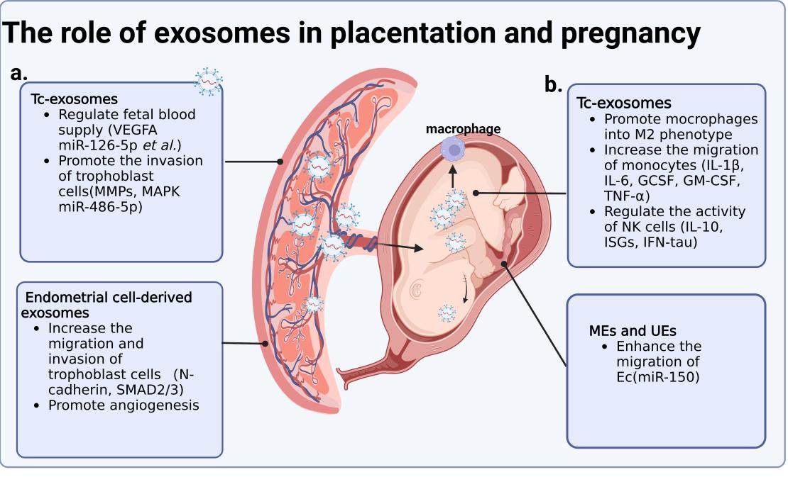 图3 外泌体及其内含物在胎盘形成和妊娠维持中的调节作用机制