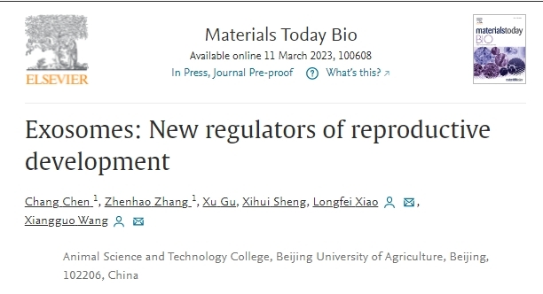 王相国副教授课题组题为Exosomes: New regulators of reproductive development的长篇综述论文(doi: 10.1016/j.mtbio.2023.100608)。