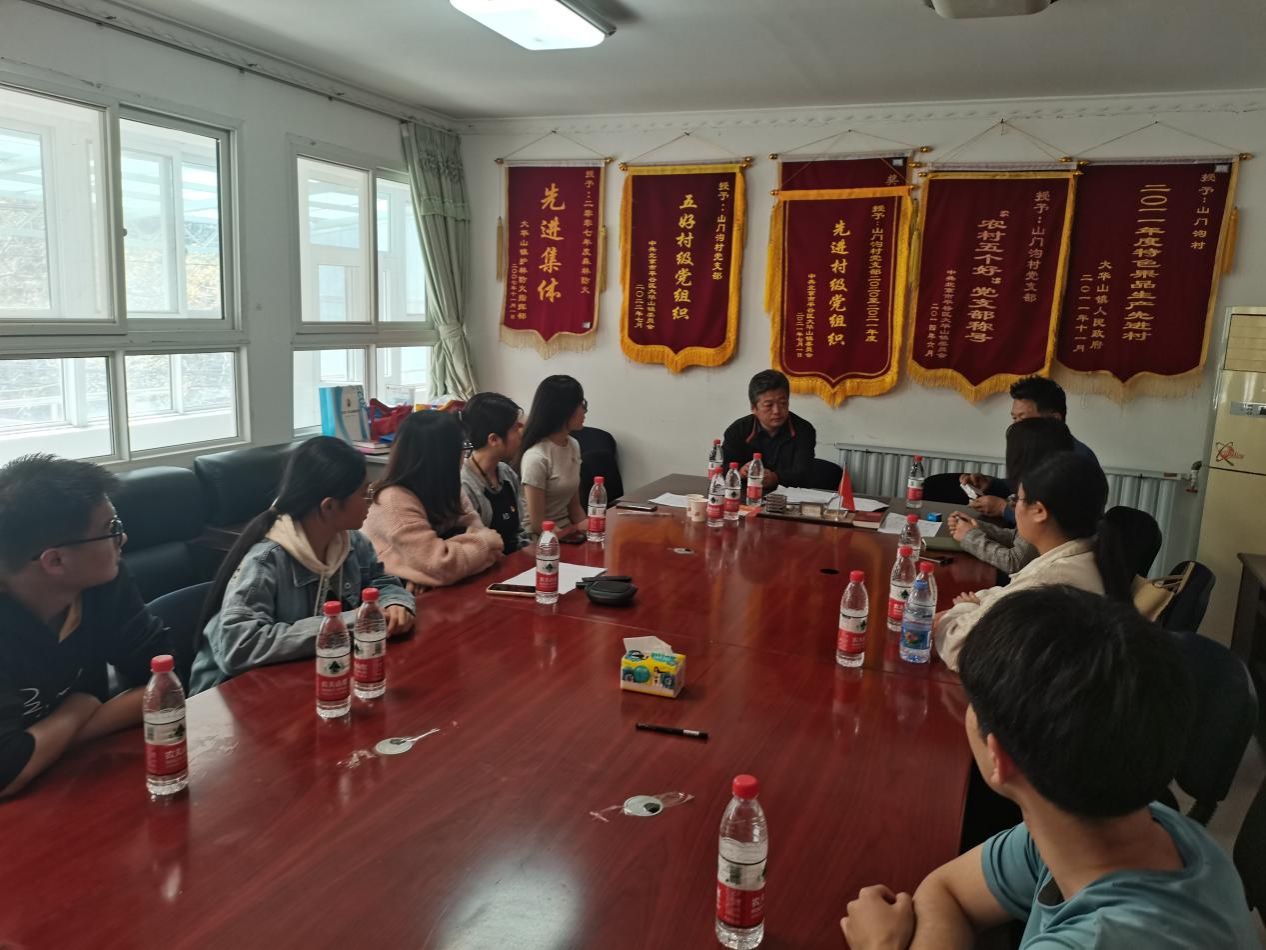艺术设计系王亚英老师团队的帮助下,村容村貌有了较大改善。支部党员、入党积极分子与山门沟村第一书记王君恒、村书记刘立军召开座谈会,了解山门沟村现阶段鸡场、羊场、以及蜂场等特色产业的开展情况,了解存在的困难与问题,沟通下一步宣传展板设计、公众号运营等工作事项;两支部共同开展了学习贯彻习近平新时代中国特色社会主义思想主题教育,共同学习《习近平论“三农”工作和乡村振兴战略》文章,结合实际工作开展了研讨交流。