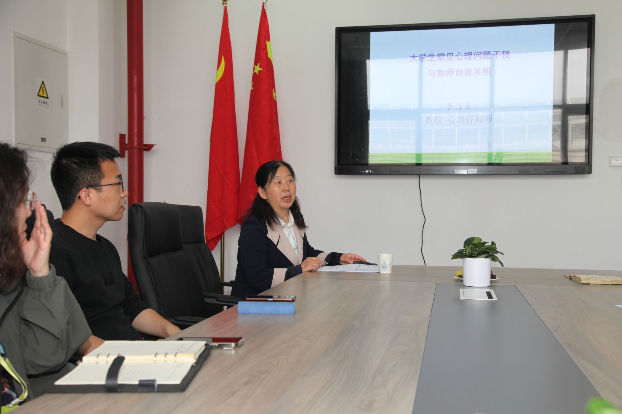 于4月28日中午特邀校心理咨询中心李有玉教授为全体班主任开展了题为《大学生常见心理问题干预与教师自我关照》的专题培训。