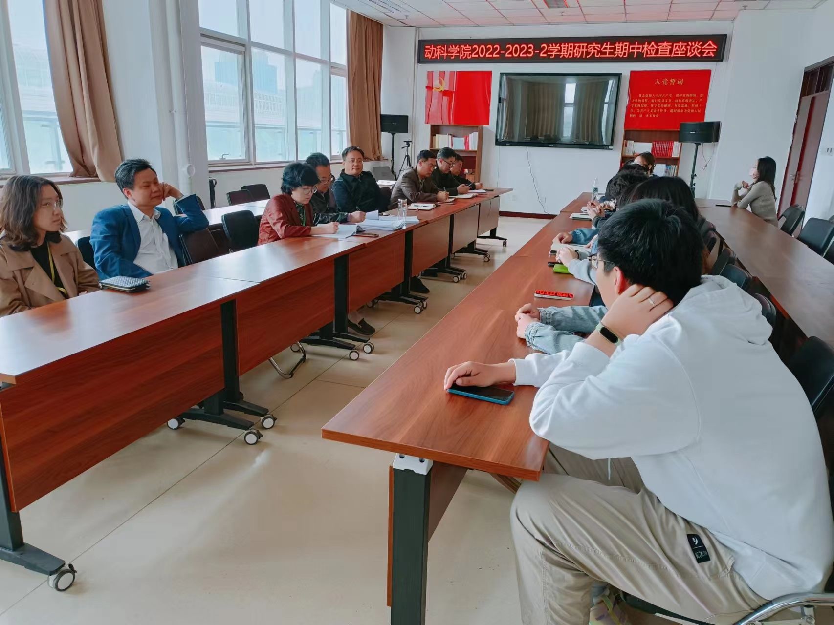 在动科楼313会议室召开期中教学检查研究生代表座谈会。研究生督导任晓明、研究生处管理科李新毅、红桃视频