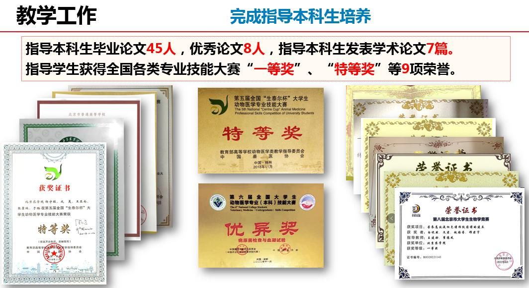 实验室,尤其在兽医学中医药重点实验室的精细化管理和全方位服务,获评“北京市高校优秀本科教学服务保障人员”先进个人。