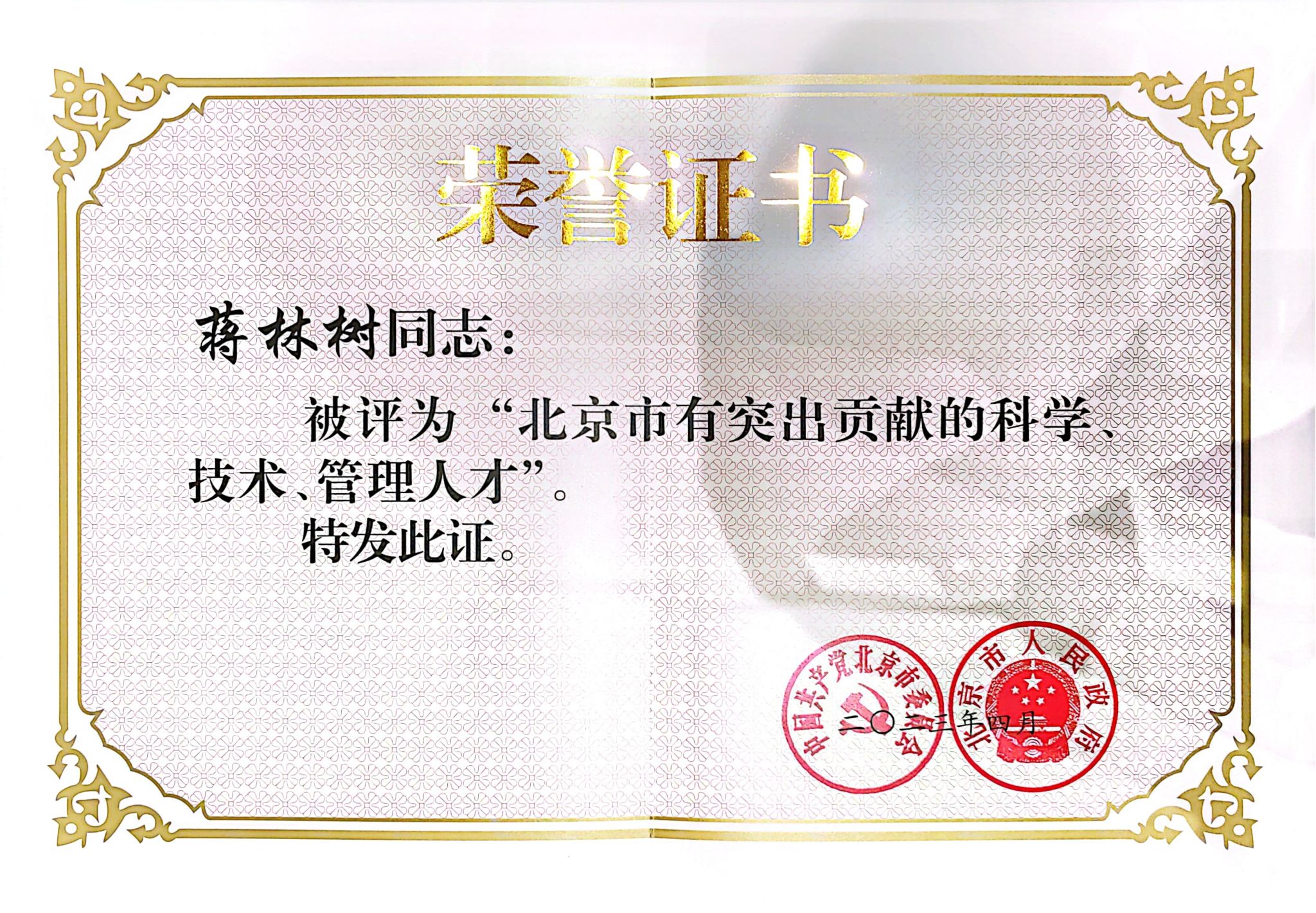 为大力实施首都人才发展战略,表彰在首都经济社会发展中作出突出贡献的科学、技术、管理人才,加强创新型、领军型高层次人才队伍建设,根据《北京市市级人才专项表彰奖励项目评选表彰办法》,近日,中共北京市委、北京市政府对第十四批“北京市有突出贡献的科学、技术、管理人才”进行表彰,并颁发荣誉证书。红桃视频