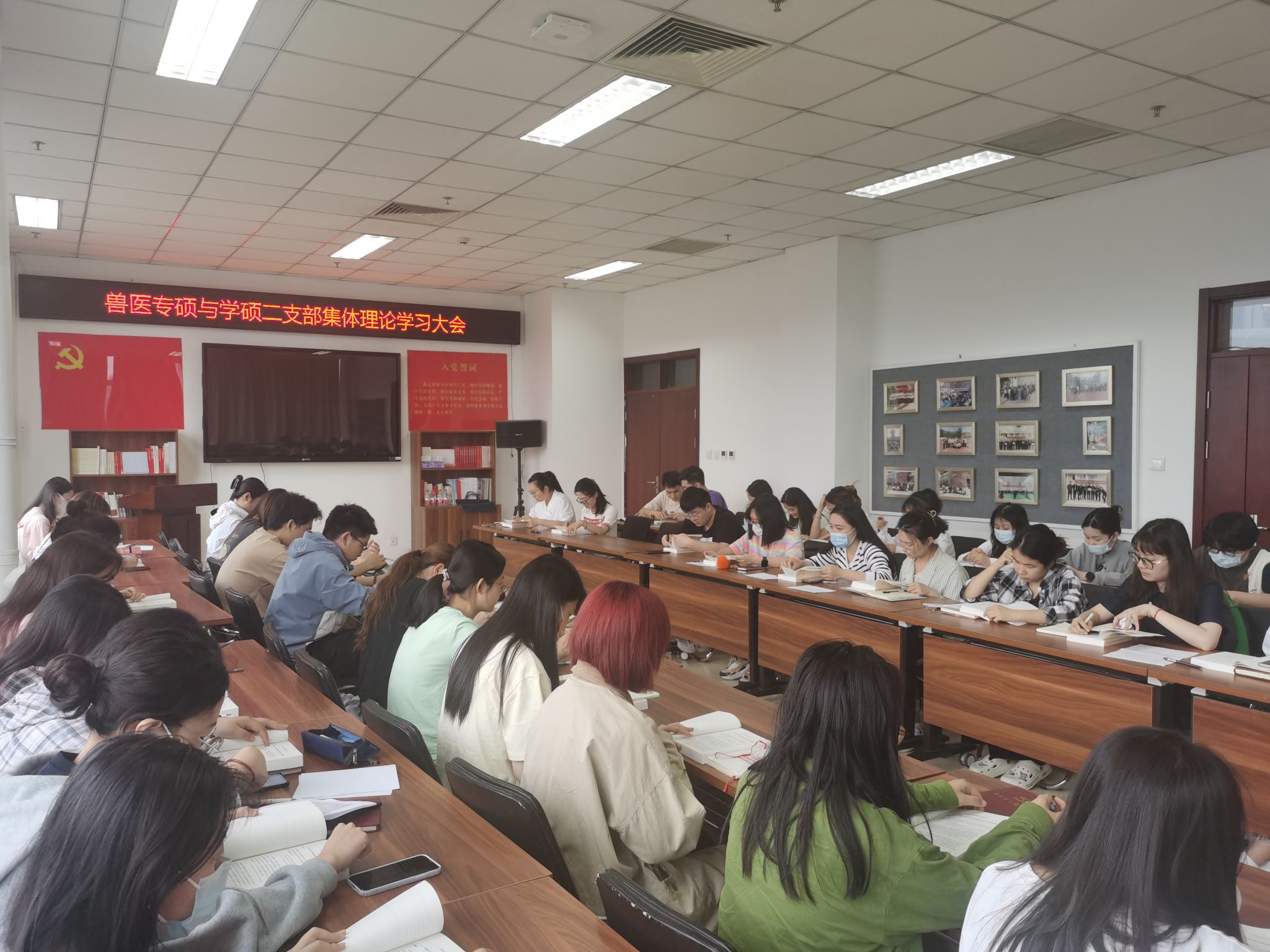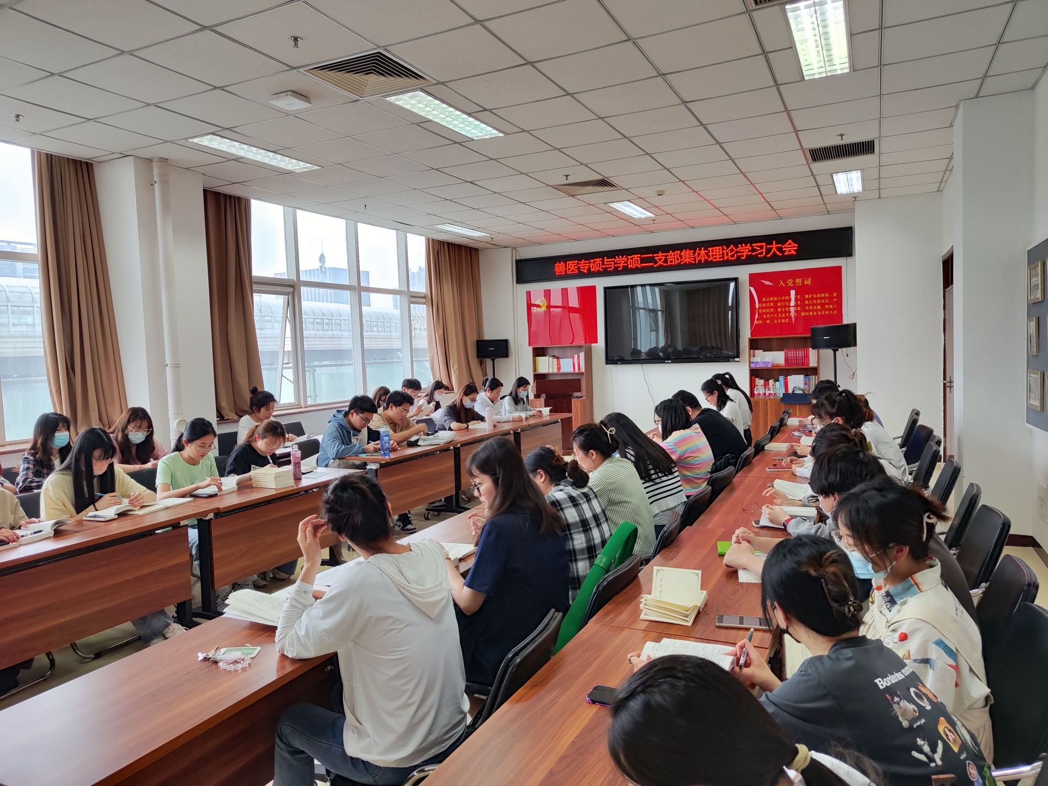 近日,兽医专硕党支部和兽医学硕第二党支部联合召开学习贯彻习近平新时代中国特色社会主义思想主题教育专题学习会,深入学习贯彻落实《习近平新时代中国特色社会主义思想学习纲要(2023年版)》。