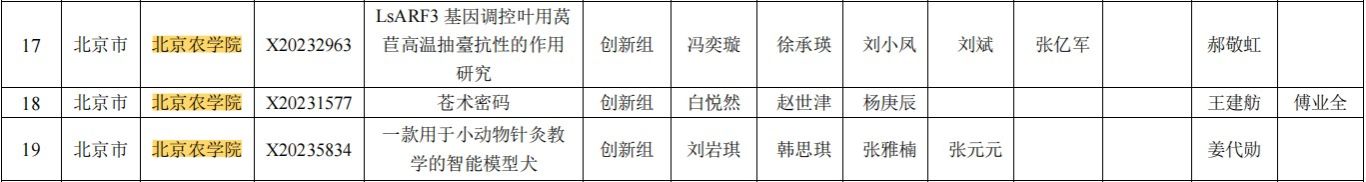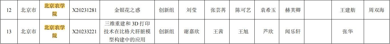 第八届全国大学生生命科学竞赛(创新创业类)公开决赛名单