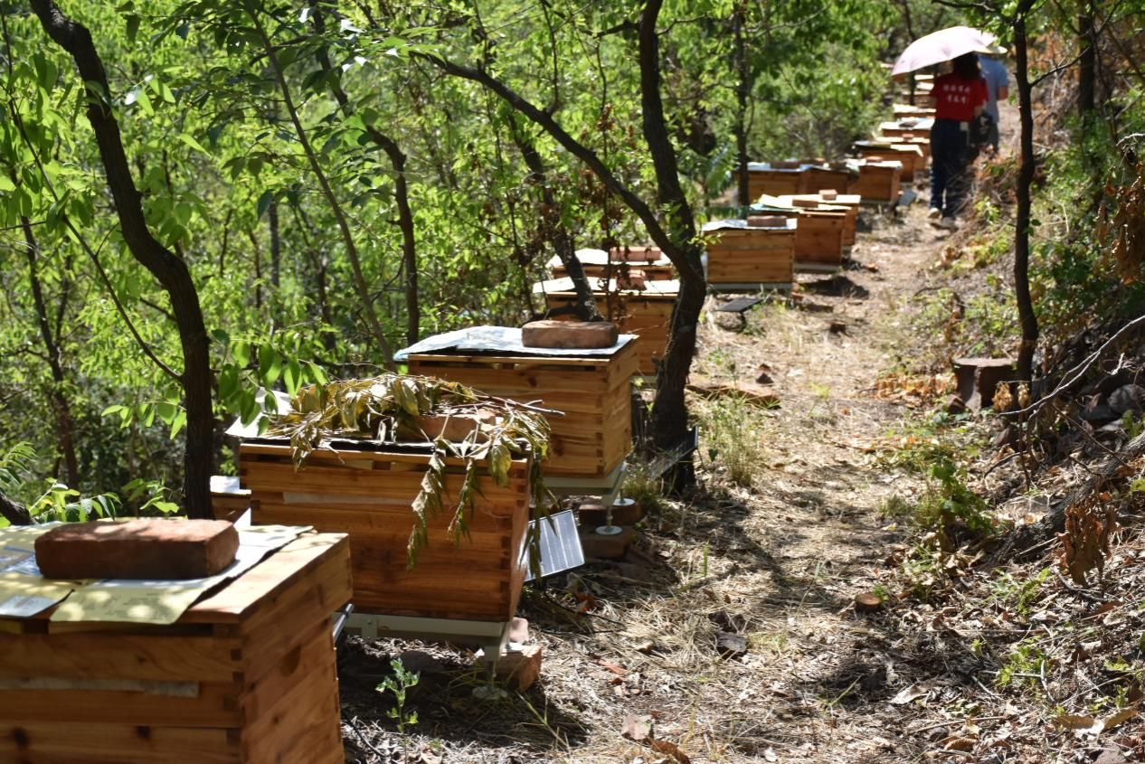 在此设立的博士农场开展智慧养蜂产业,几十个智慧蜂箱让同学们大开眼界,蜜蜂可以在此自由采集山中花蜜,饮食山中泉水,智慧蜂箱可以节省大量人力,更科学的进行蜜蜂养殖,为村民创造更大收益。