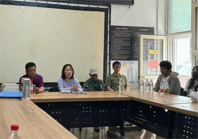 大华山镇山门沟村党支部第一书记孙宇飞介绍了村基本情况,村书记刘立军就村中开展林下养殖的情况进行了介绍,并就养殖过程中存在的实际问题与同学们进行了交流。村中的老党员张永,结合驻村第一书记帮助村中脱贫的切身感受,教育引导同学们要走到乡村一线去,在实践中练就兴农本领,在乡村振兴的大舞台上建功立业。