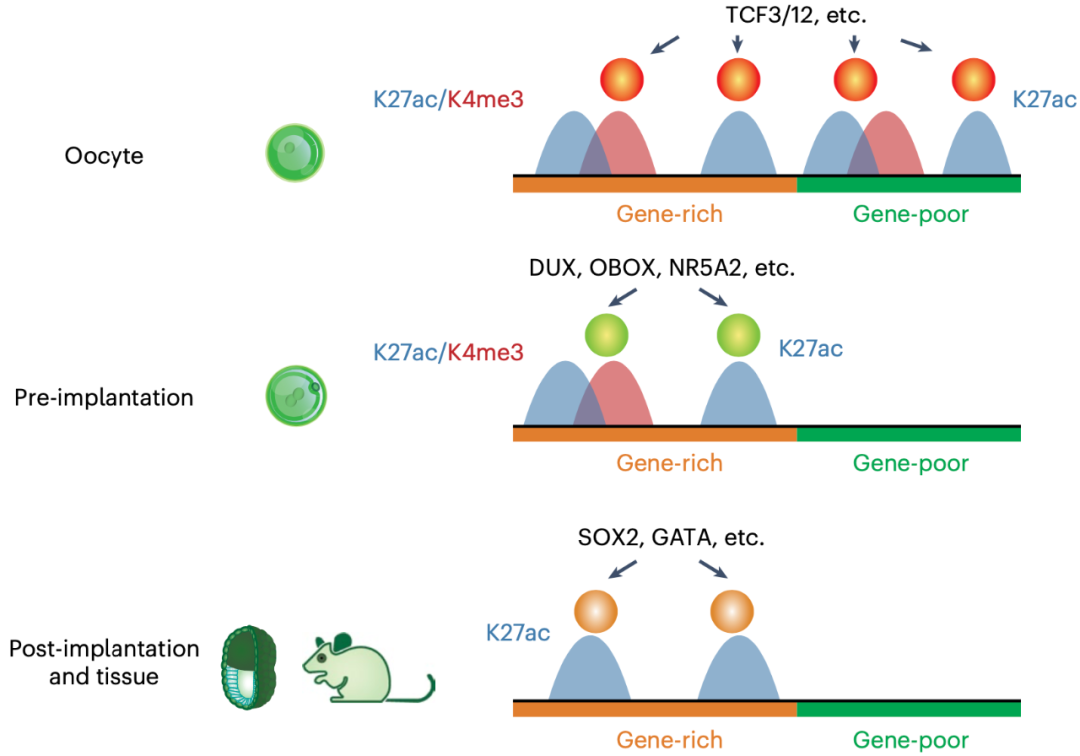 该研究验证了小鼠卵子中活跃增强子的存在,揭示了卵子和早期胚胎发育过程中增强子不同于成体细胞和组织的独特属性,并鉴定了参与调控卵子发生过程中增强子的关键转录因子—TCF3和TCF12。