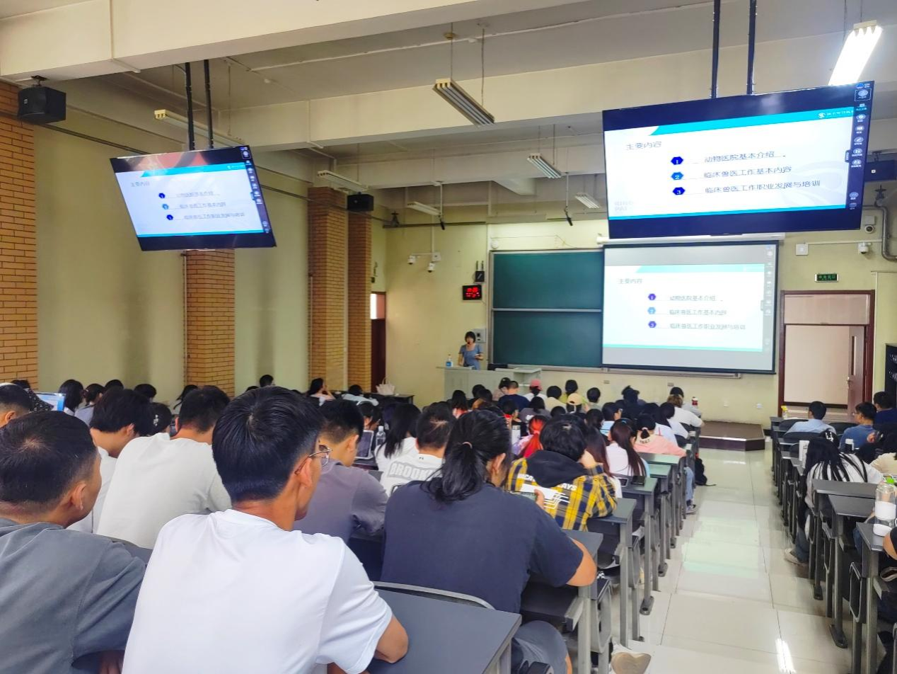 大四年级动物医学专业的学生分别做了“瑞派宠物医院执业兽医的岗位晋升”和“临床兽医——爱好即事业的完美工作”的报告。