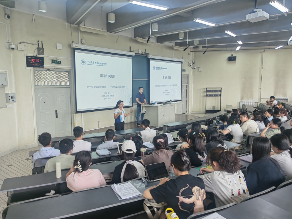 高健副教授(奶牛产业扶贫工作站北京科技特派员、中国农垦标杆牧场评审组专家)以“奶牛饲养管理与奶业健康发展策略”为题,为2020级动物医学专业的同学们分享了奶牛饲养管理的关键技术、奶业发展的前沿策略以及奶牛常见疾病的治疗方法。