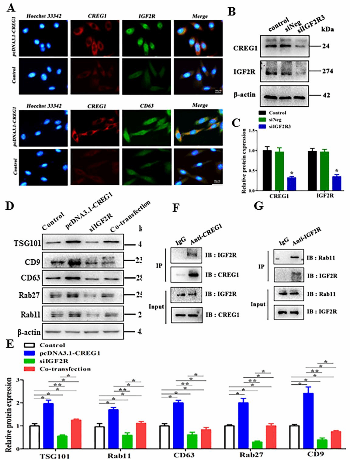 图1 CREG1靶向结合IGF2R调控外泌体的发生和释放