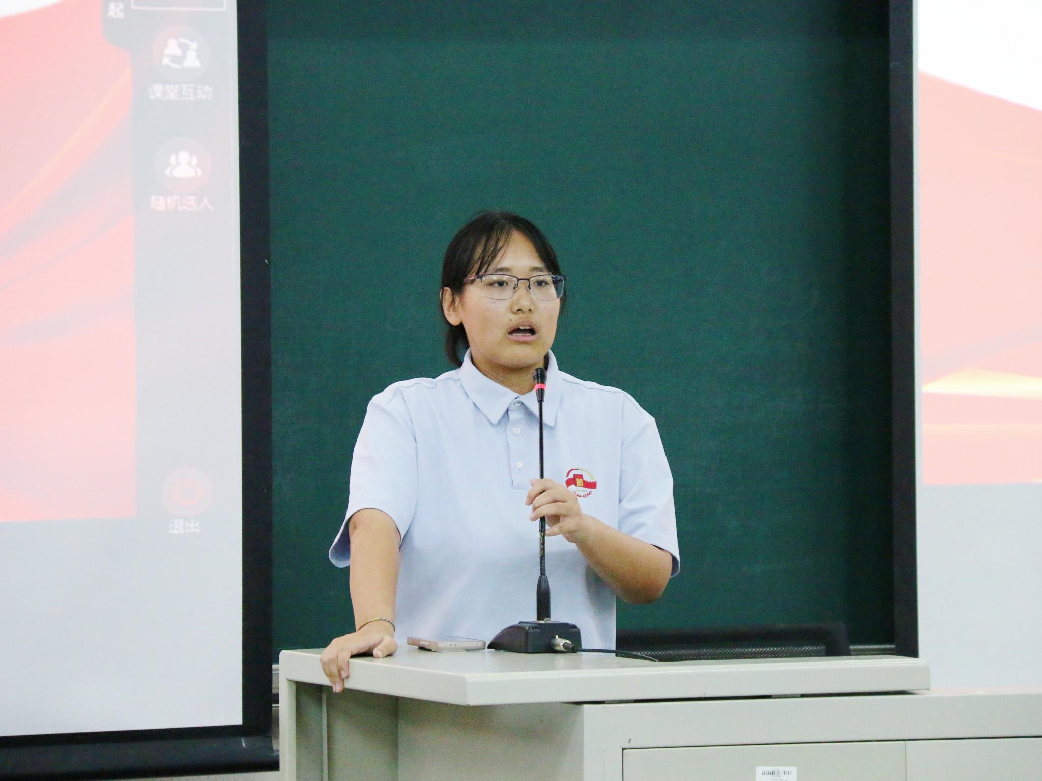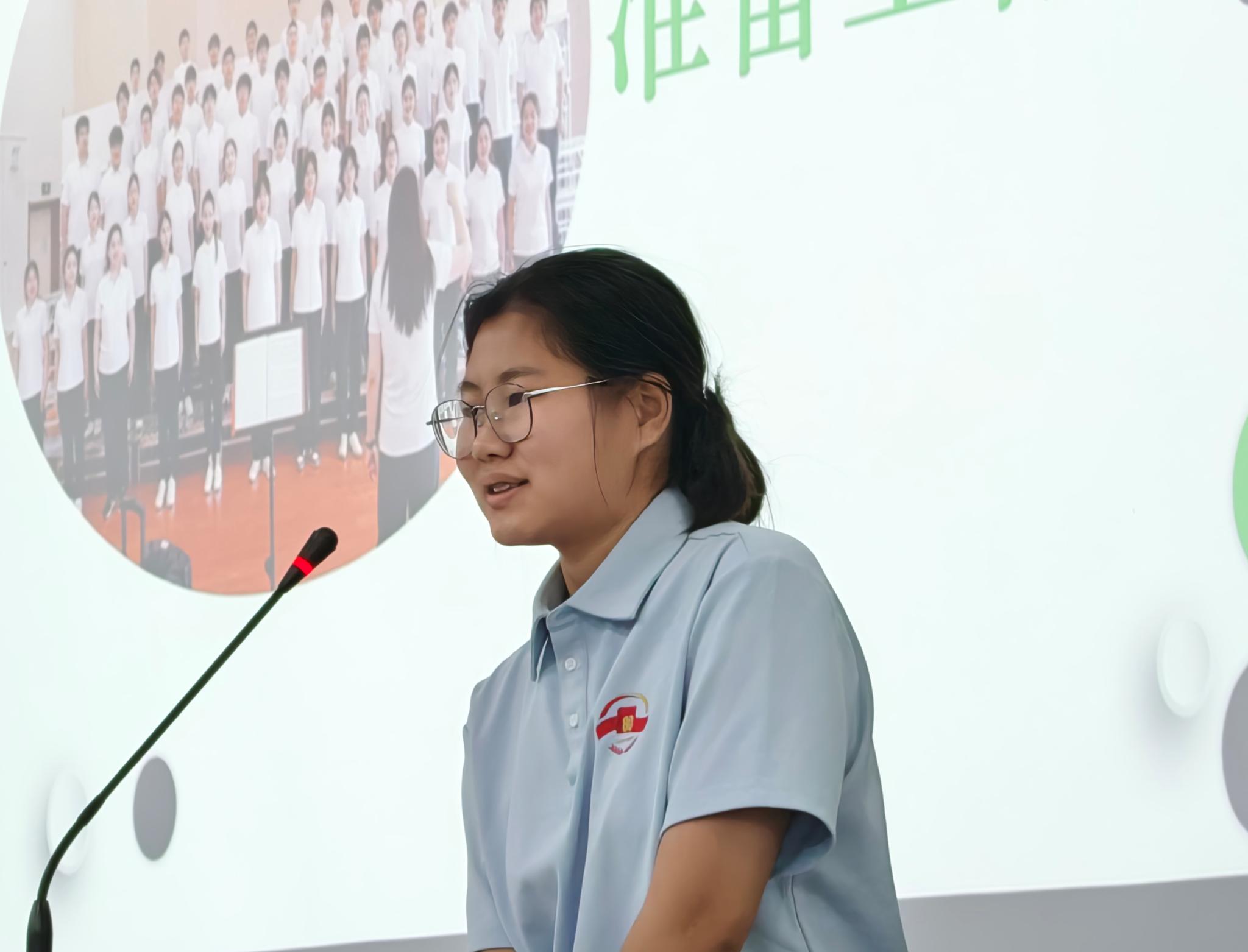 女声合唱团的团长,在合唱团中兼任男低声部副部长。她分享了训练期间的各种有趣故事,从悦耳动听的歌声、充满激情的朗诵,到坚韧有力的军拳、响彻云霄的大合唱,多元化的活动有效增强了团队的向心力,唤起了他们对党和国家深厚的感情与强烈的责任感。通过共同学习与协作,成员增进了解信任,深刻理解党的理念和国家发展,培养认同与责任感。这些活动增强个人能力,坚定信仰,充满信心,为团队和个人成长提供坚实基础。