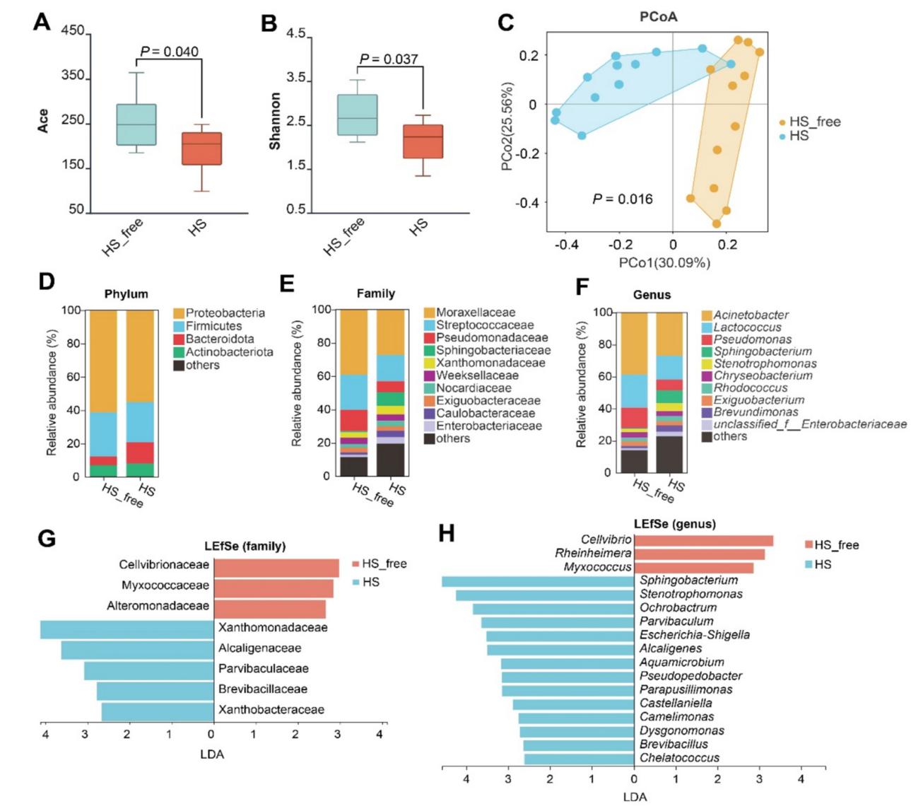 研究发现,热应激显著降低牛乳抗氧化能力,导致超氧化物歧化酶(SOD)、谷胱甘肽过氧化物酶(GSH-Px)等关键抗氧化指标活性下降,脂质过氧化标志物丙二醛(MDA)含量升高。微生物群落结构发生显著改变,腐生相关细菌(如鞘氨醇杆菌属、不动杆菌属)丰度增加,有益菌群丰度降低,提升了牛乳腐败风险。代谢层面,热应激扰乱能量、氨基酸及脂质代谢,使必需氨基酸(如亮氨酸、赖氨酸)、不饱和脂肪酸(如共轭亚油酸)及极性脂质(如磷脂酰胆碱、鞘磷脂)等营养成分减少,饱和脂肪酸比例上升。风味特征上,己醛、酮类、含硫化合物等异味挥发性物质显著增加,甜香酯类化合物减少,严重影响消费者接受度。