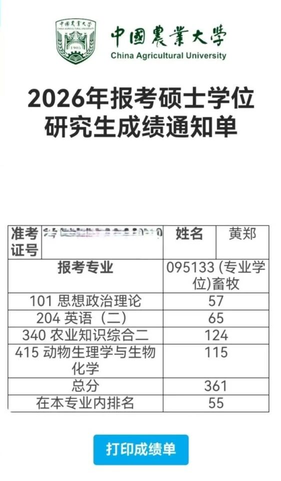 硕士招生考试中,以复试成绩第1,综合成绩第1的好成绩成功上岸中国农业大学!这份“双第一”的背后是大学四年的笔耕不辍,也是自我能力的精准定位和专业发展的细致规划。